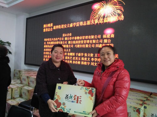 2017年1月17日上午09:00时,烟台晚报-慈善总会-通伸街道安立盛学雷锋志愿大队送温暖活动在通伸街道辖区居委会隆重召开。本次活动的由众多爱心企业与爱心人士共同资助。烟台市福建商会做为爱心企业捐助此次活动。彰显闽商的大爱无疆。本次活动捐助的人群主要以孤寡老人、失独家庭、军烈属家庭、低保家庭、困难家庭等,表彰了烟台“爱心守护天使”团队,她们天使的心守护关爱每一个人。我们做闽商群体在齐鲁大地上挥洒热情,为第二故乡尽份心力。