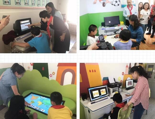 大家共同参观了学校的康复训练项目,在言语康复、感统训练等各个训练教室里,孩子们进行着各种康复训练,他们见到爱心人士,都礼貌地向大家挥手问好。