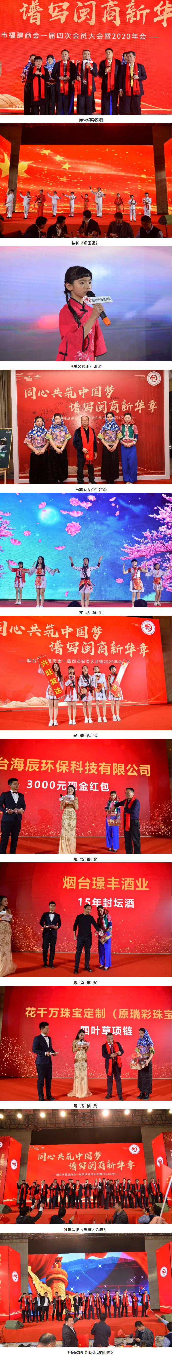 “八闽儿女多才俊,黄海之滨竞风流。”烟台市福建商会一届四次会员大会暨2020年会晚宴,在快板《祖国颂》中拉开帷幕,节目内容涉及诗朗诵、独唱、歌伴舞、大合唱等,给与会领导嘉宾、社会各界及会员企业送上了最诚挚的新春祝福和美好祝愿!
