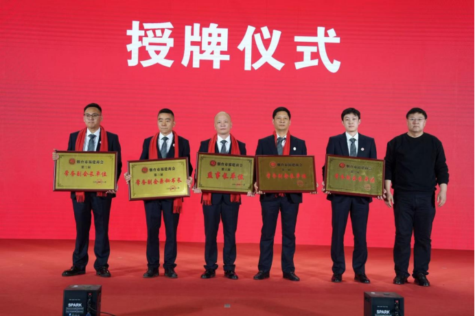 随后,大会进入了庄重的授牌仪式环节。福建省工商联党组成员、副主席余建为商会荣誉职务领导颁发聘书;烟台市政协副主席、市工商联主席李京波为第三届理事会会长李锋授牌;烟台市社会组织管理局局长为监事长、常务副会长及秘书长授牌;会长李锋为副会长授牌;党支部书记林梅、常务副会长兼秘书长康允文为理事、副秘书长授牌;监事长陈琪云为监事授牌。一系列授牌,标志着新一届商会领导班子正式履新,开启了"筑梦远航"的新征程。