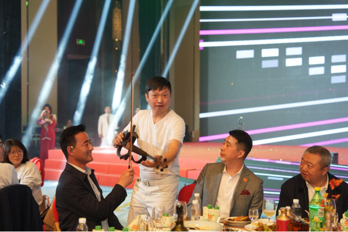 晚宴节目精彩纷呈,惊喜不断。会员何秀云献唱《春风十万里》,歌声悠扬;小马智能科技有限公司设计总监张育畅带来《千山万水》、《行歌》等表演,寓意商会发展历程。神奇的魔术、悠扬的乐器连奏相继登场,令人目不暇接。备受瞩目的"迎财神"环节与多达20轮的抽奖活动交替进行,奖品丰厚,大奖频出,欢声笑语此起彼伏,现场始终洋溢着热烈、喜庆、祥和的氛围。